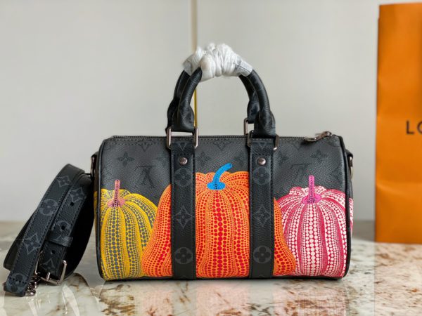 Pumpkin silk screen pillow bag men’s bag series M46271 Keepall XS handbag shipped, very suitable for girls’ back, black and silver color matching pumpkin silk screen 20 pillows mini pillow oo[handshake][handshake] same style for men and women, black old The flower is very handsome, the most important thing is that the shoulder strap can be adjusted, Monogram coated canvas-cowhide trim-fabric lining-zipper closure-removable, adjustable shoulder strap! !