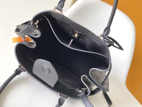 The Lockme Day bag combines elegance and functionality in grained calfskin. Feminine details like the LV lock buckle and key case set off the clean lines, while the structured structure brings plenty of capacity. Easily switch the carrying mode and travel as you like.