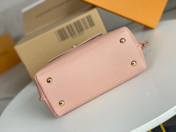 This season, the petite Lockme Ever mini bag is dyed in a trendy new color in grained calfskin. The exquisite lines and the iconic LV padlock convey trendy style, the elegant braided chain strap enables cross-body or shoulder-carry options, and the top handle makes the hand more gentle. It is a good choice to carry around day and night. Dimensions: 23 x 17 x 10 cm