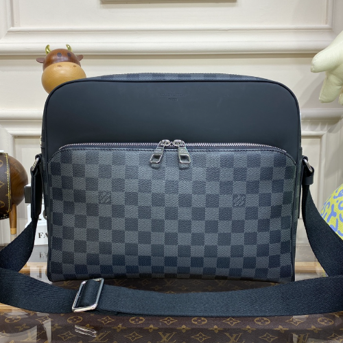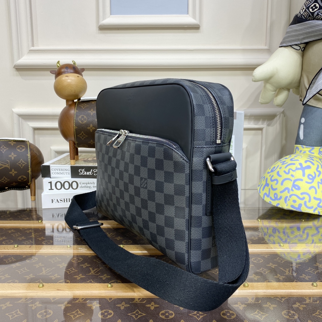LU DAYTON Men’s Messenger Bag Medium Reporter Bag N41409 The perfect size for urban commuting. The new classic bag combines elegant and modern exquisite style with extremely practical interior design. The practical zippered outer pocket is convenient for daily necessities. The exterior of the bag is made of Damier Graphite coated canvas fabric lined with natural cowhide trim and silver metal accessories. Zipper opening and closing iPad bag.