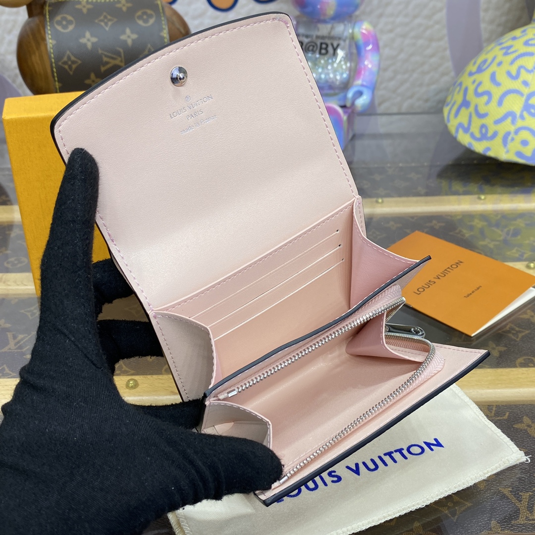 This compact wallet can be easily stored in any handbag. Opening the curved flap reveals a functional interior compartment, including a credit card slot and a zippered coin compartment. – 6 credit card slots – 1 zippered coin compartment – 1 accordion compartment – 2 internal patch pockets – Mahina perforated calfskin – cowhide lining – silver metal hardware –