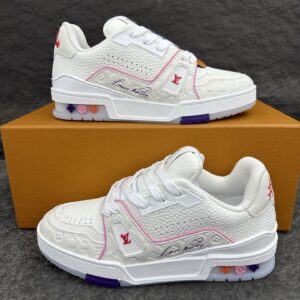 Louis Vuitton LV Trainer Low-top casual trainers Sneakers Sports shoes Men’s shoes Women’s shoes Sneakers White and pink Cruise exclusive 1APHLG