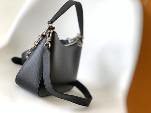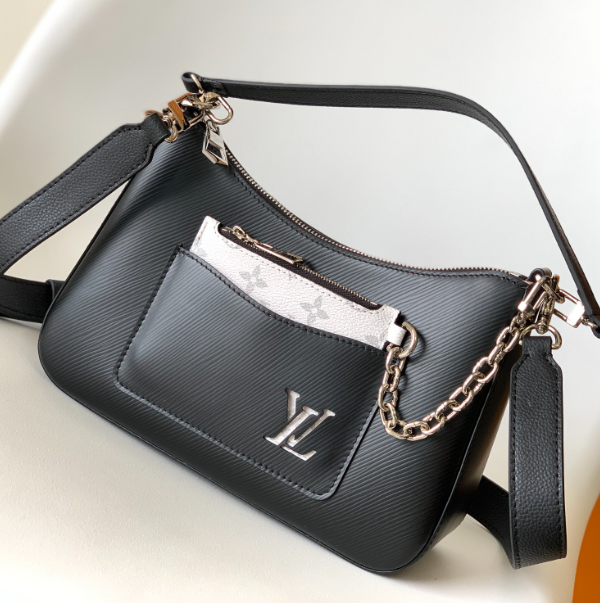 Marelle handbag is made of Epi grain leather, and the detachable canvas zipper bag in the outer bag is fixed by a chain. Attach the top handle or the adjustable shoulder strap to carry it by hand, on the elbow, over the shoulder, or across the body.