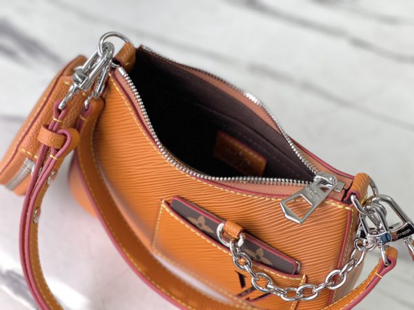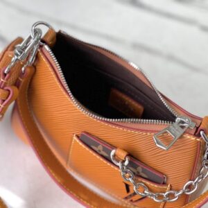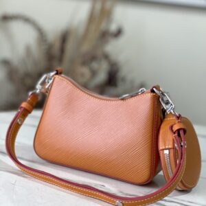 The Marellini handbag is made of Louis Vuitton’s signature Epi leather, which integrates the agile elements of the Marelle handbag into a more compact shape. The round coin purse can be removed at will, and is fixed by a chain in the front patch pocket of the mirror.