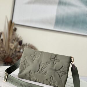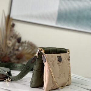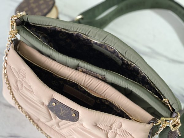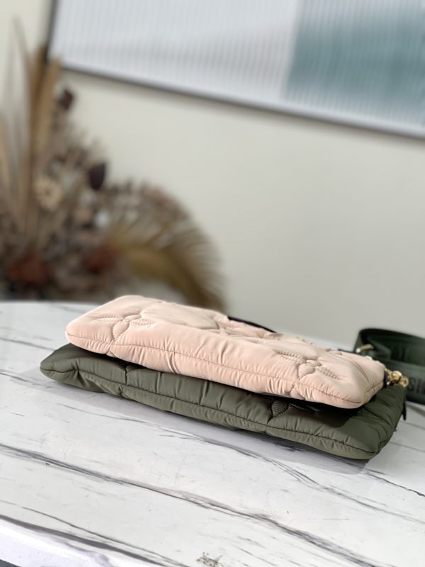 Maxi Multi Pochette Accessoires bag in Econyl recycled nylon. It has a Monogram embroidered exterior for a fluffy cushioned feel and a Mini Monogram printed Econyl lining. Featuring multiple pockets and compartments, it brings together the Pochette Accessoires clutch, Pochette Accessoires mini clutch and round coin purse in one place.