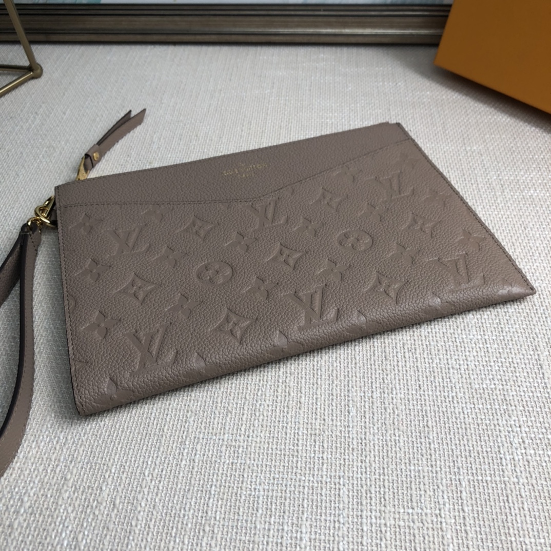 The Mélanie medium clutch is made of soft Monogram Empreinte leather with Monogram embossing slightly on the surface, with a detachable wrist strap, V-shaped front pocket and card slot, showing the fusion of elegance and function.