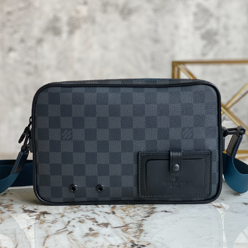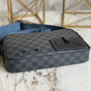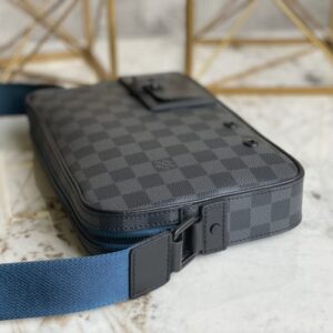 Men’s Messenger Bag Series Alpha Messenger Bag with black grid blue shoulder strap releases a modern atmosphere in the structure of classic Damier Graphite canvas and black metal parts.