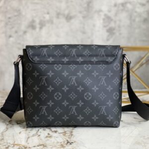 Black Flower Men’s Messenger Bag Series This District small messenger bag is made of Monogram Eclipse canvas and leather trim. Magnetic closures and a zipped back pocket keep items secure.
