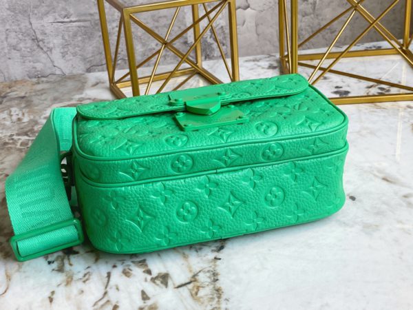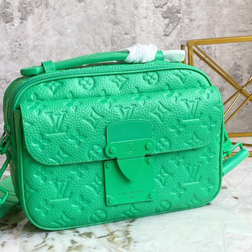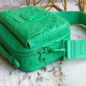 Green full leather men’s messenger bag series S Lock messenger bag is made of Monogram Macassar canvas, and the new lock is inspired by the hard case lock designed by Georges Vuitton in 1886. A special finishing process gives this magnetic metal closure a bold and modern look. It also features ample zippered compartments, a hard case-style leather handle and an LV logo shoulder strap for stylish style and ease of use.