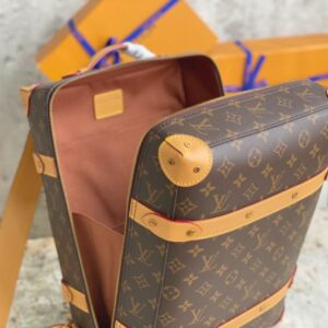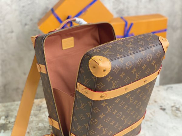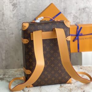 Presbyopia Backpack Series Men’s Artistic Director Virgil Abloh gave the suitcase configuration a backpack function, using Monogram coated canvas and cowhide trim to create this Soft Trunk small backpack, stitched with rivet corners. There is also a top handle for a portable experience. Monogram coated canvas-fabric lining-cowhide trim-copper gold-tone hardware-adjustable leather shoulder strap-leather top handle-pair of inner pockets-inner patch pocket.