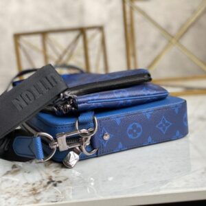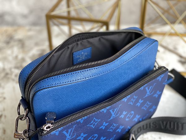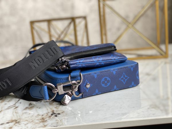 Blue flower men’s three-piece series M69443 TRIO messenger bag This Trio messenger bag is from the Taigarama leather goods series. It has a main compartment, a detachable zipper front pocket and a small coin pocket fixed on the shoulder strap. Effortlessly go with classic style.