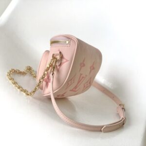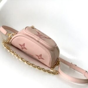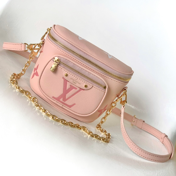 Mini Bumbag handbag from the LV Gradient series, which renders the gradient midsummer color for the Monogram embossing of Monogram Empreinte leather. The on-trend shape features a zipped main compartment, and a Louis Vuitton leather label accents the front pocket. Clever use of the detachable chain and detachable and adjustable shoulder strap, the shoulder and crossbody can be converted at will.