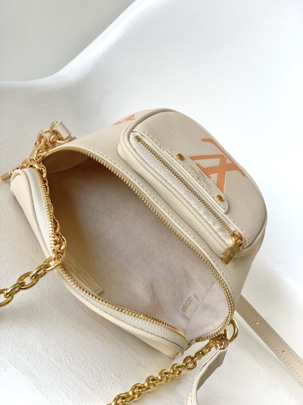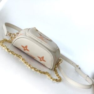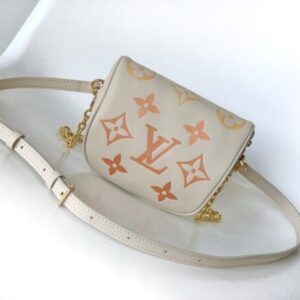 Mini Bumbag handbag from the LV Gradient series, which renders the gradient midsummer color for the Monogram embossing of Monogram Empreinte leather. The on-trend shape features a zipped main compartment, and a Louis Vuitton leather label accents the front pocket. Clever use of the detachable chain and detachable and adjustable shoulder strap, the shoulder and crossbody can be converted at will.