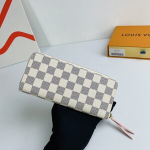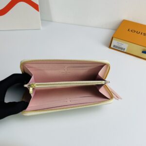 The Clemence wallet, small and compact yet roomy, is made of delicate and durable Monogram canvas. The bright-colored lining and leather zipper show the playful charm of women.