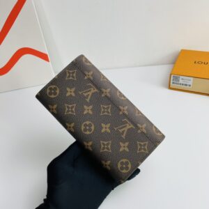 Exclusive real shot! This envelope wallet in elegant Monogram canvas features a discreet interior with various pockets and credit card slots.