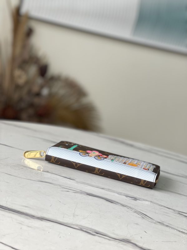 Vivienne Holidays 2022 series launched a limited edition Zippy single pull, highlighting the travel heritage. The colorful print records mascot Vivienne’s visit to the Soho boutique in New York, and appeared together with the local iconic yellow taxi. Discreetly structured in Monogram canvas, it has a zip closure and leather lining.