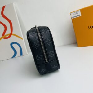 Exclusive real shot! Today’s traveler expects a practical toiletry bag that fits easily in a suitcase for excursions. Distinctively crafted from thick Monogram Eclipse canvas and leather, this large toilet bag is distinctive.