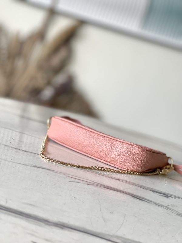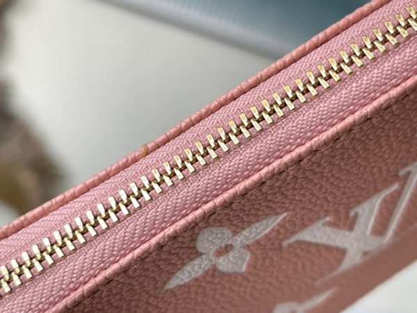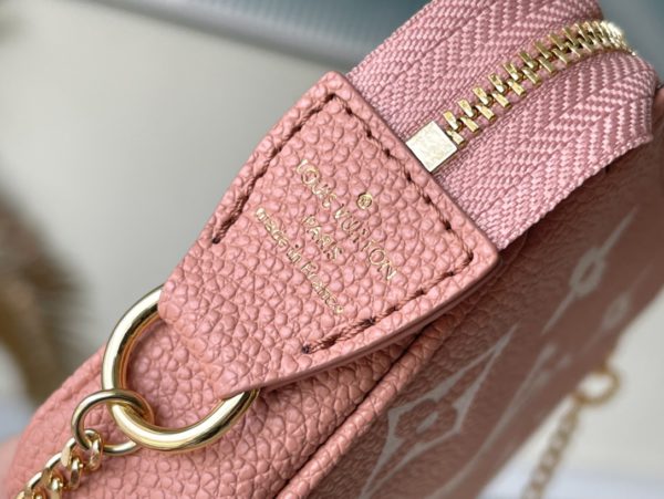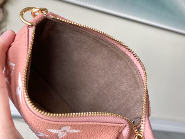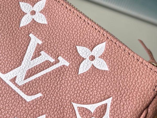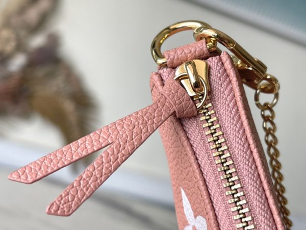Pink Silkscreen is embossed with classic Monogram patterns on soft Monogram Empreinte leather, releasing elegant charm with two-color design. Can be hung on a handbag or belt through a chain