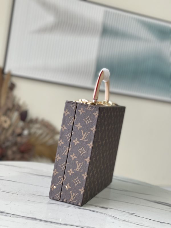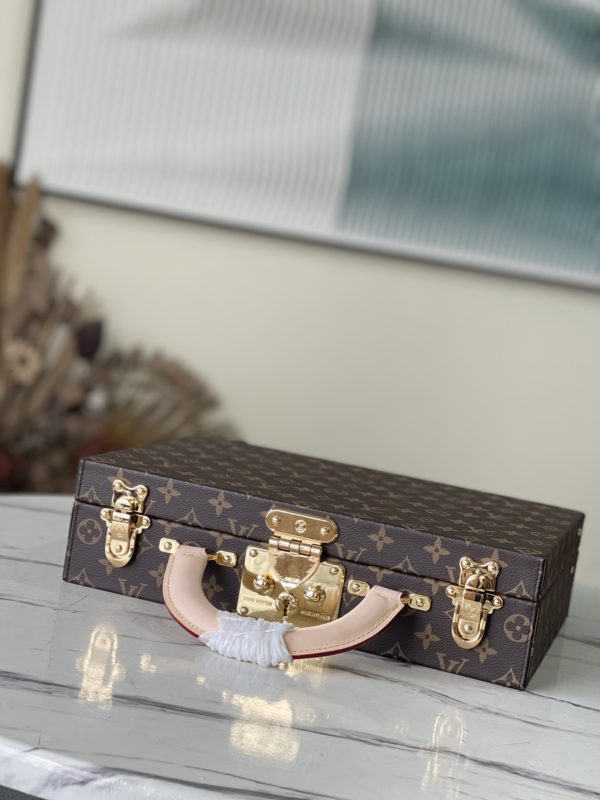 Pink This Monogram jewelry case is especially suitable for carrying precious items when traveling. There are thirteen compartments of different sizes, which are opened and closed by S lock and two suitcase mortise locks. This product is expected to arrive in more than three months.