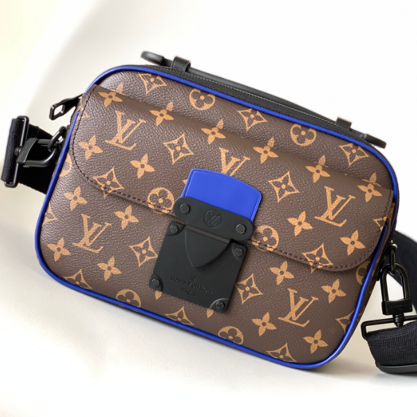 This S Lock messenger bag M58489 Embossed M45806 Black M45836 Blue M46243 Purple M46246 Green Made of Monogram Macassar canvas, the new lock is inspired by the hard case lock designed by Georges Vuitton in 1886 build. A special finishing process gives this magnetic metal closure a bold and modern look. It also features ample zippered compartments, a hard case-style leather handle and an LV logo shoulder strap for stylish style and ease of use.