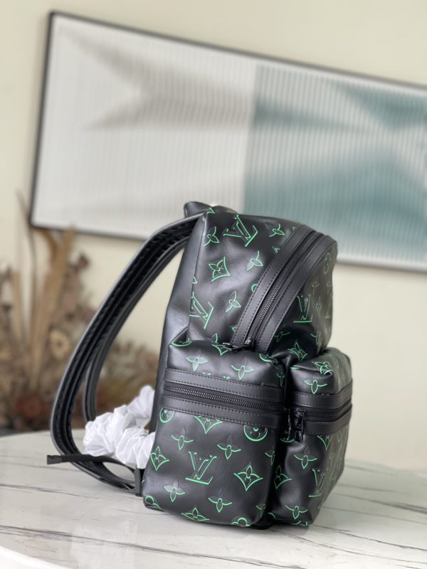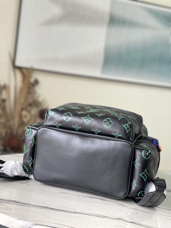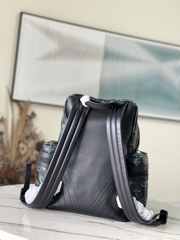 Full leather backpack series This backpack is made of soft texture and decorated with delicately printed Monogram Shadow calfskin. The full leather embossed side double pockets have a dynamic style. This backpack features an outer pocket for easy access, a comfortable leather strap and top handle for easy hand-carrying and shoulder-carrying.