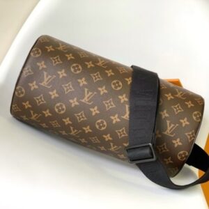 Single Soft Polochon handbag combines Monogram Macassar canvas and bright leather details, making the chic cylindrical outline more modern, providing an alternative new way to carry daily needs. The form-fitting design features a detachable leather handle and a detachable and adjustable fabric shoulder strap for versatile on-the-go options.