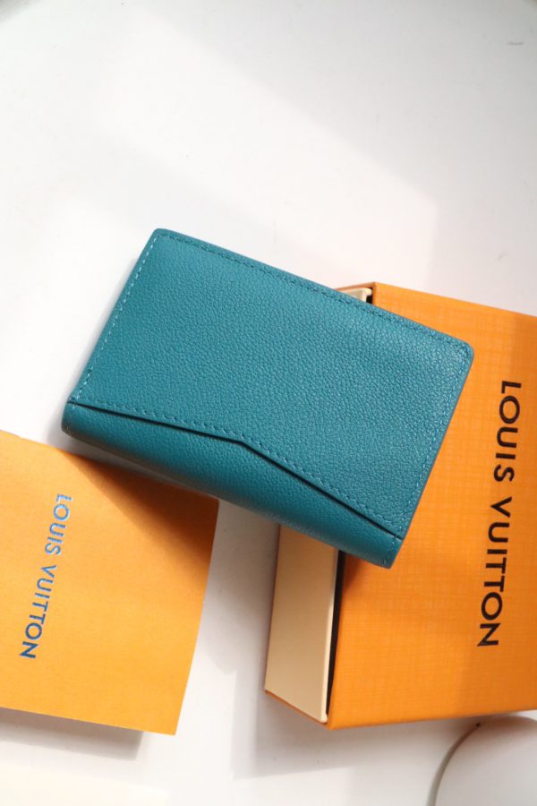 This Louis Vuitton Classic Pocket Wallet is presented in a modern soft blue tone. Louis Vuitton’s unique Aerogram leather is as delicate and soft as vintage air mail, decorated with LV logo metal pieces in the same tone. Six compartments and three credit card compartments can accommodate different items and easily pack into pockets.