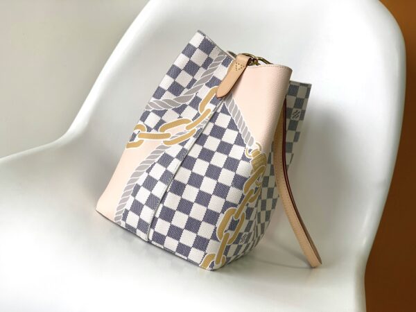 NéoNoé medium handbag is made of Damier Azur canvas, reflecting the nautical print composed of rope and chain patterns, flying summer fashion freely. The zipper inner pocket can properly keep the accompanying items, and the adjustable shoulder strap can realize long or short shoulder and cross-body options.