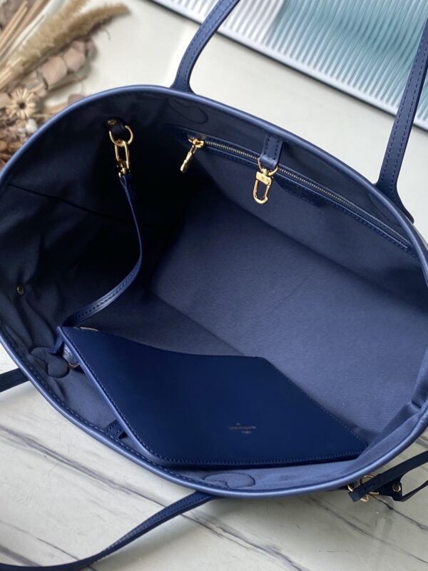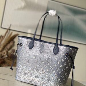 This Neverfull medium-sized handbag uses Monoglam coated canvas to create eye-catching holographic visual effects. The canvas is made from a jacquard base woven with cotton and decorative threads, with a reflective coating that changes color in response to light. Slim handles allow for comfortable shoulder and elbow carry.