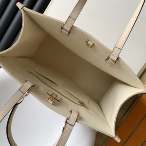 White printing Monogram pattern printed and dyed first, then embossed Softer than grained cowhide, its ample interior can accommodate laptops and computers For other office supplies, the long and short handles are easy to carry by hand or on the shoulder.