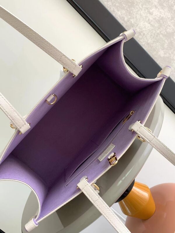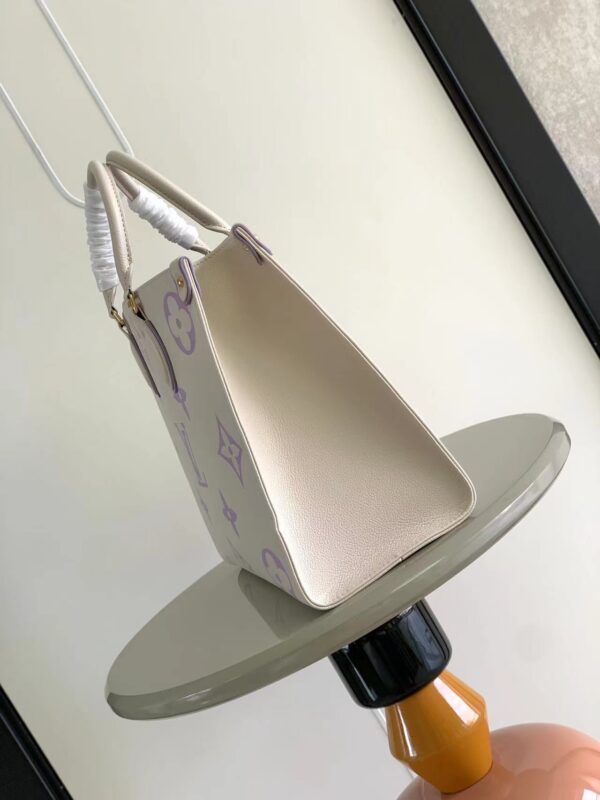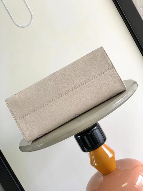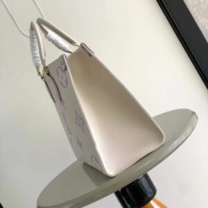OnTheGo medium Tote bag is printed and dyed with the Monogram pattern and then embossed on soft grained cowhide. Its ample interior can accommodate a laptop computer and other office supplies. The long and short handles are easy to carry or carry on the shoulder.