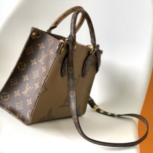 ONTHEGO handbag Work, shopping or weekend travel, pick up the Onthego handbag and start immediately. The oversized Monogram print contrasts with the mini Monogram trim, and with ample inner design, the sense of avant-garde and modern is self-evident.