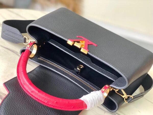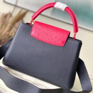 Louis Vuitton Ostrich Pattern Capucines Small Handbag – Black Red