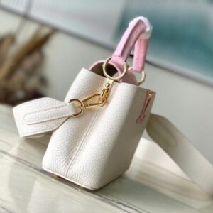 Capucines handbag is made of Taurillon leather to create an exquisite shape, and the flap, handle and LV letters are wrapped in ostrich leather. The flip cover can be opened or closed to read the LV logo, and the detachable wide leather shoulder strap is full of modern style.
