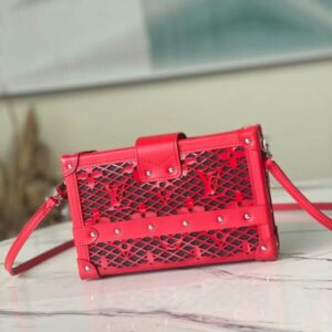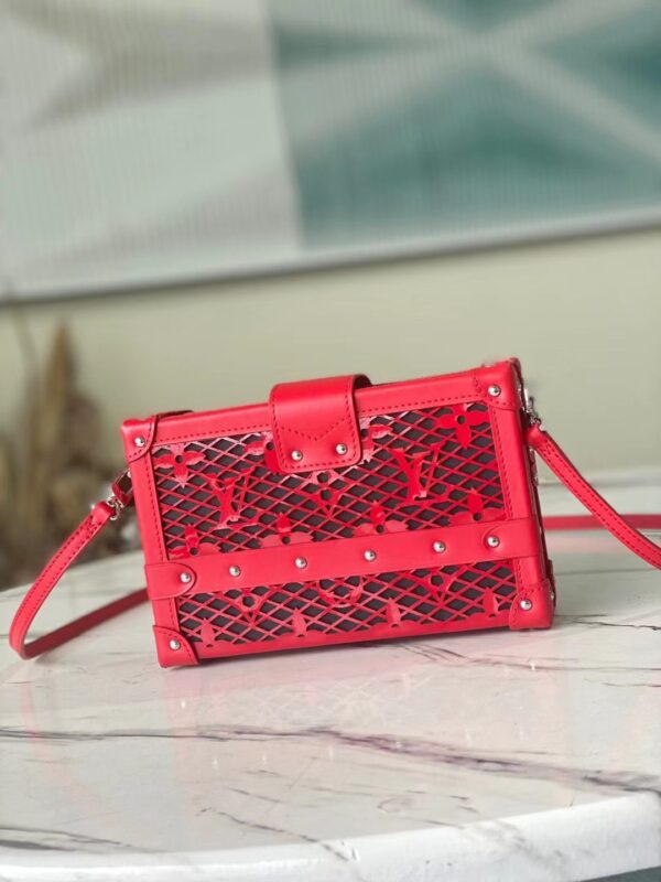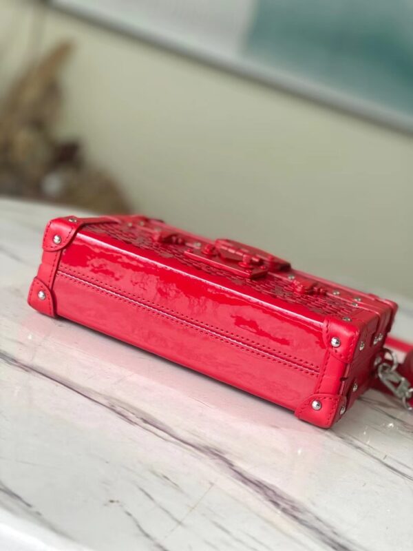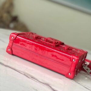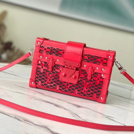 Petite Malle handbag is the iconic design of Nicolas Ghesquière. This time it is made of Monogram Lace patent leather, and laser cutting presents Monogram flowers and letter perforations. Can be carried by hand or on the shoulder.