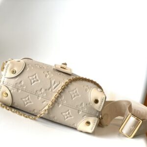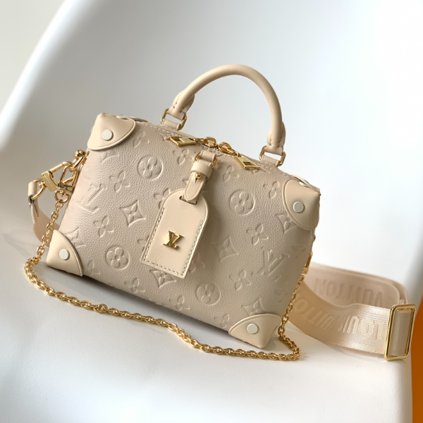 Petite Malle Souple handbag is made of embossed Monogram Empreinte leather, which is a soft version of the now classic Petite Malle handbag. Incorporating studded leather corners and a leather luggage tag with logo, it conveys Louis Vuitton’s trunk-making heritage. Complete with a detachable wide shoulder strap, a top handle and a practical zipped interior pocket.