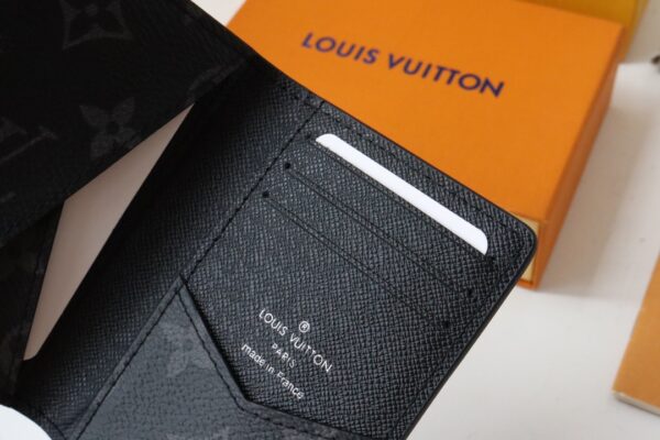 Crafted in Epi leather with a smooth leather interior and Monogram Eclipse canvas embellished with the Monorgam print, this Pocket Universal Wallet brings unexpected class to the wallet. This compact wallet features three credit card slots and five pockets on the interior, embossed with the LV Initials logo in contrasting tones.