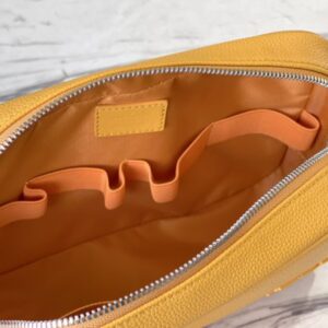 Yellow Full Leather Clutch Clutch Collection Nowadays, travelers all hope to have a practical toiletry bag that can be easily put into the suitcase for short trips. This large toilet bag is crafted from black grained leather with distinctive features.