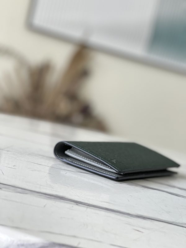 Saffiano green BRAZZA wallet is made of Taïga cowhide leather, with restrained colors to accentuate the delicate texture. Compartment for bills and receipts, plus coin pocket and card slots.