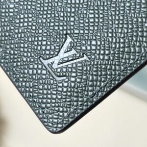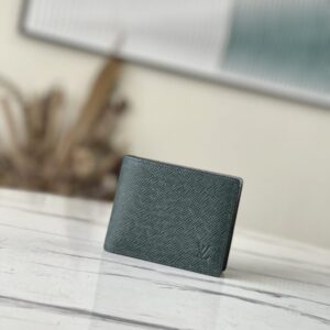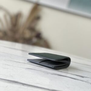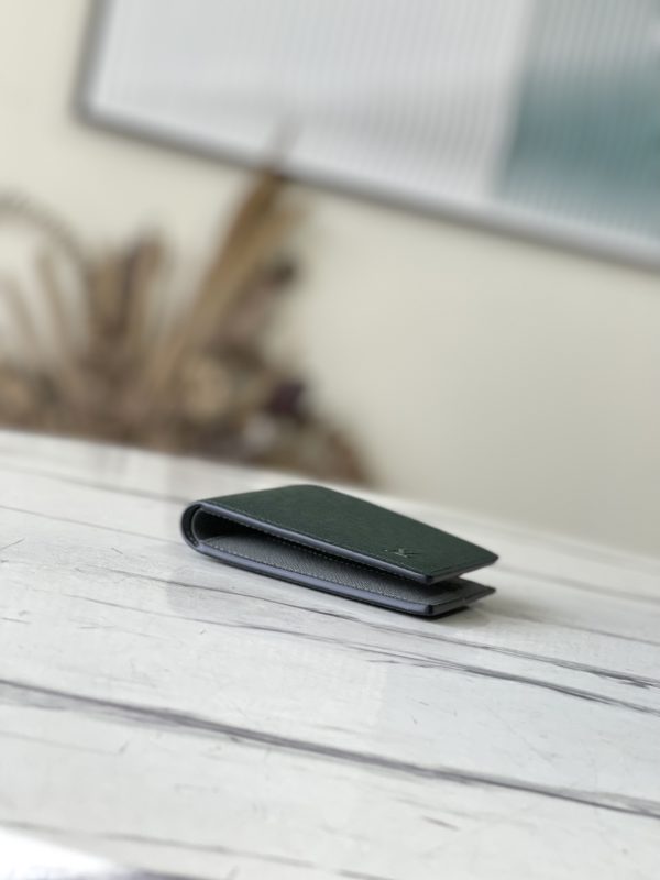 Saffiano Green This Slender Wallet features a calm tone of Taïga embossed leather and a slim profile that includes card slots and bill compartments, and fits easily in most pockets.