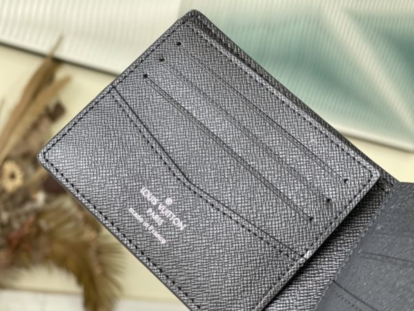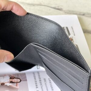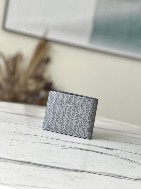 Saffiano Gray This Slender Wallet features a calm tone of Taïga embossed leather and a slim profile that includes card slots and bill compartments, and fits easily in most pockets.