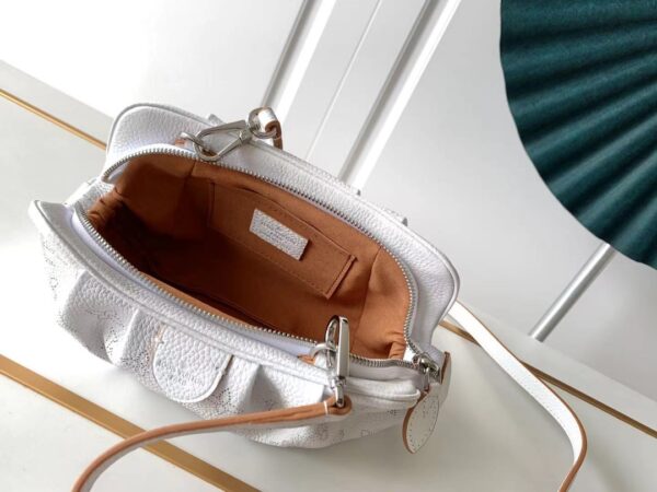 The Scala Mini Handbag takes inspiration from the curtain pleats and depicts the classic Monogram pattern in soft engraved calfskin. It has perforations and ample space to accommodate daily needs. The detachable and adjustable shoulder strap enables a variety of carrying methods.