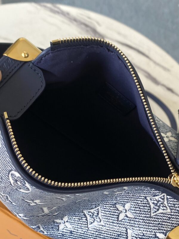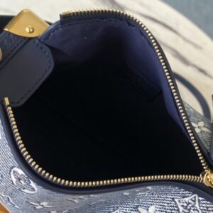 This Side Trunk handbag is an eye-catching new work inspired by Nicolas Ghesquiere’s classic suitcases. The Monoglam canvas body is made from a laminated jacquard base fabric woven with cotton and decorative threads for an almost holographic visual effect. Metal wrapped corners, an S-lock closure, and colorful trim enrich the details.