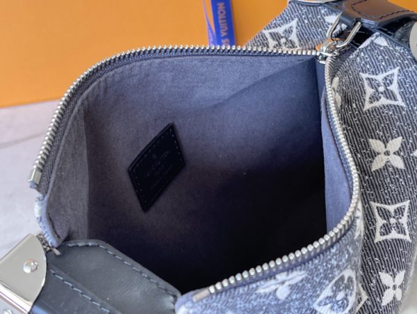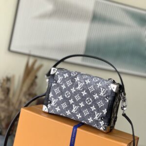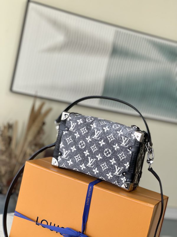 Cruise early spring show announced the return of classic elements, giving Monogram jacquard denim a rustic sand wash effect, and using it to shape a new Side Trunk handbag. The chic, rugged texture of the fabric is complemented by embossed leather trim and polished hardware, telling the story of traditional hard case inspiration. The handle and shoulder strap are detachable for a variety of styling possibilities.