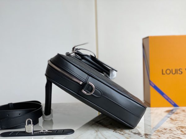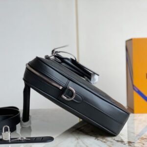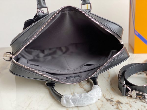 Black Full Leather Pressed Men’s Briefcase Series This small Voyage briefcase is made of Damier Graphite coated canvas, with leather side straps, reinforced corners, top handles and nameplates. An exterior pocket is convenient for smartphone storage, a padded interior compartment can hold a 13-inch laptop, and the detachable and adjustable shoulder strap provides comfortable shoulder carry.