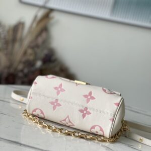 Favorite handbags are soft grained leather embossed with oversized Monogram pattern, gentle pleats infused with high-definition texture, and the magnetic buckle continues the inheritance. The detachable and adjustable shoulder strap enables short shoulder and cross-body wear, and the detachable chain is suitable for evening occasions.
