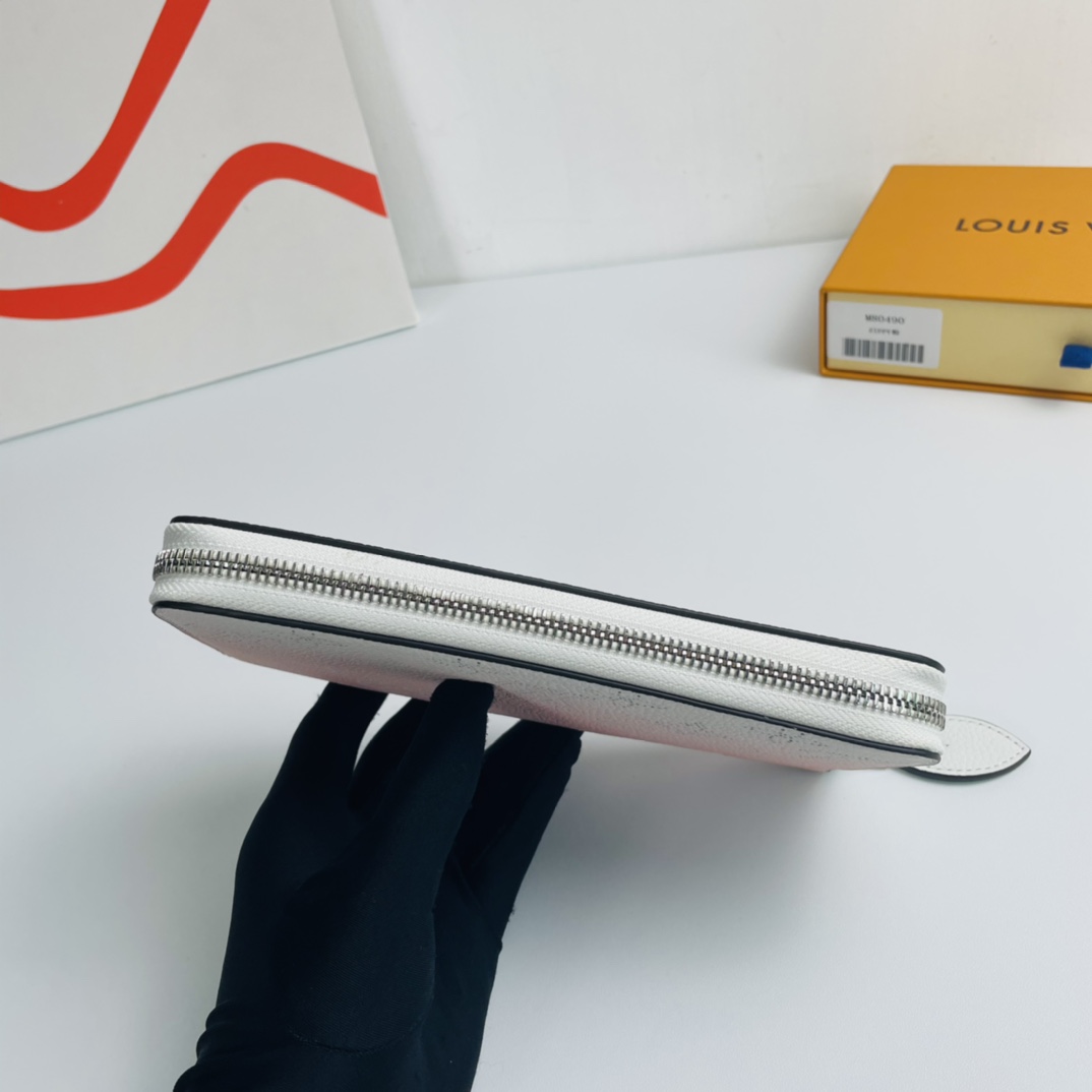 This Zippy wallet, made of soft Mahina leather with monochromatic pattern penetration and subtle color gradation, has a contrasting leather lining and silver hardware to enhance the design, with Monogram perforation design. Also attractive is the easy-to-organize interior with multiple pockets and card slots. Dimensions: 19.5 x 10.5 x 2.5 cm