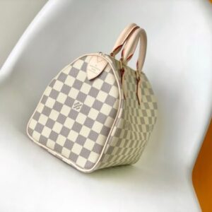 This Speedy 25 handbag is made of soft Damier Azur canvas, elegant and compact, a good companion for urban life. Based on the “Express” bag launched in 1930, it pays tribute to the era of rapid change. The outstanding silhouette, rolled leather handle and engraved padlock, today’s improved Speedy handbag is still the brand’s masterpiece.