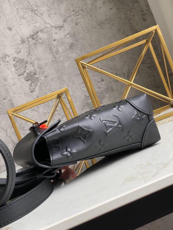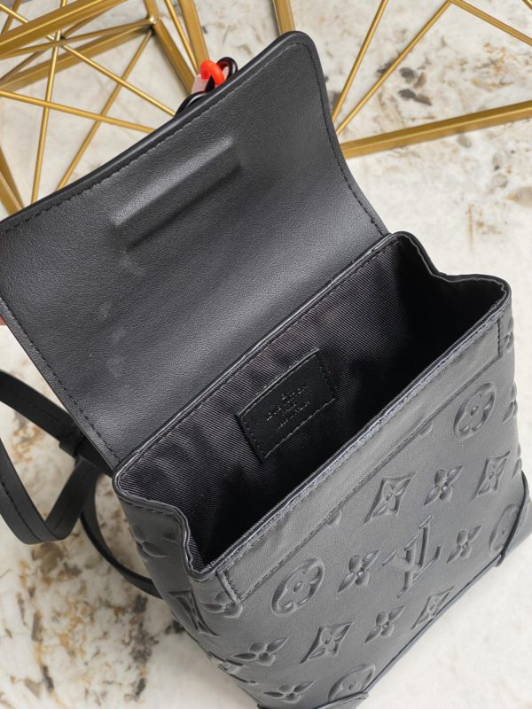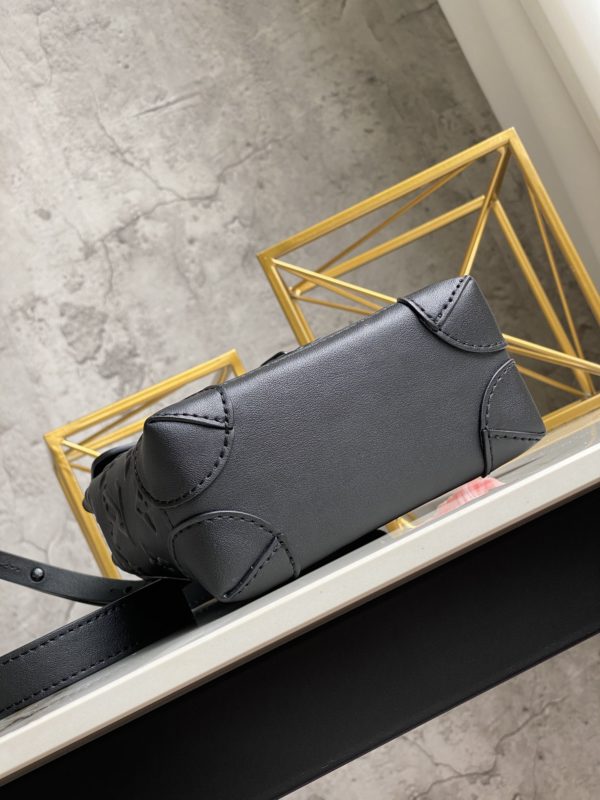 Full leather black Zoom with friends This compact Steamer Nano men’s handbag is equipped with a leather handle and a detachable shoulder strap on the top, which is convenient for hand or shoulder.