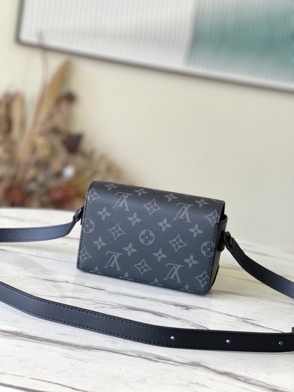 Black flower Monogram Taurillon leather complements classic elements such as Steamer style chain. Comes with an adjustable shoulder strap for easy carrying. The zippered compartment offers plenty of storage space, and the front pocket flap and magnetic closure keep your belongings secure.